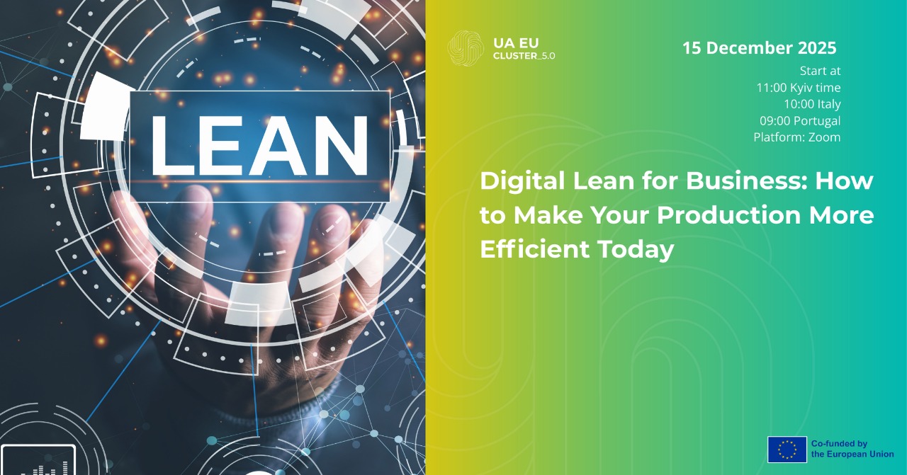 At the third UA_EU_CLUSTER5.0 webinar, we will talk about Digital Lean — a modern approach to lean production that brings together technology, efficiency, and human-centricity.
