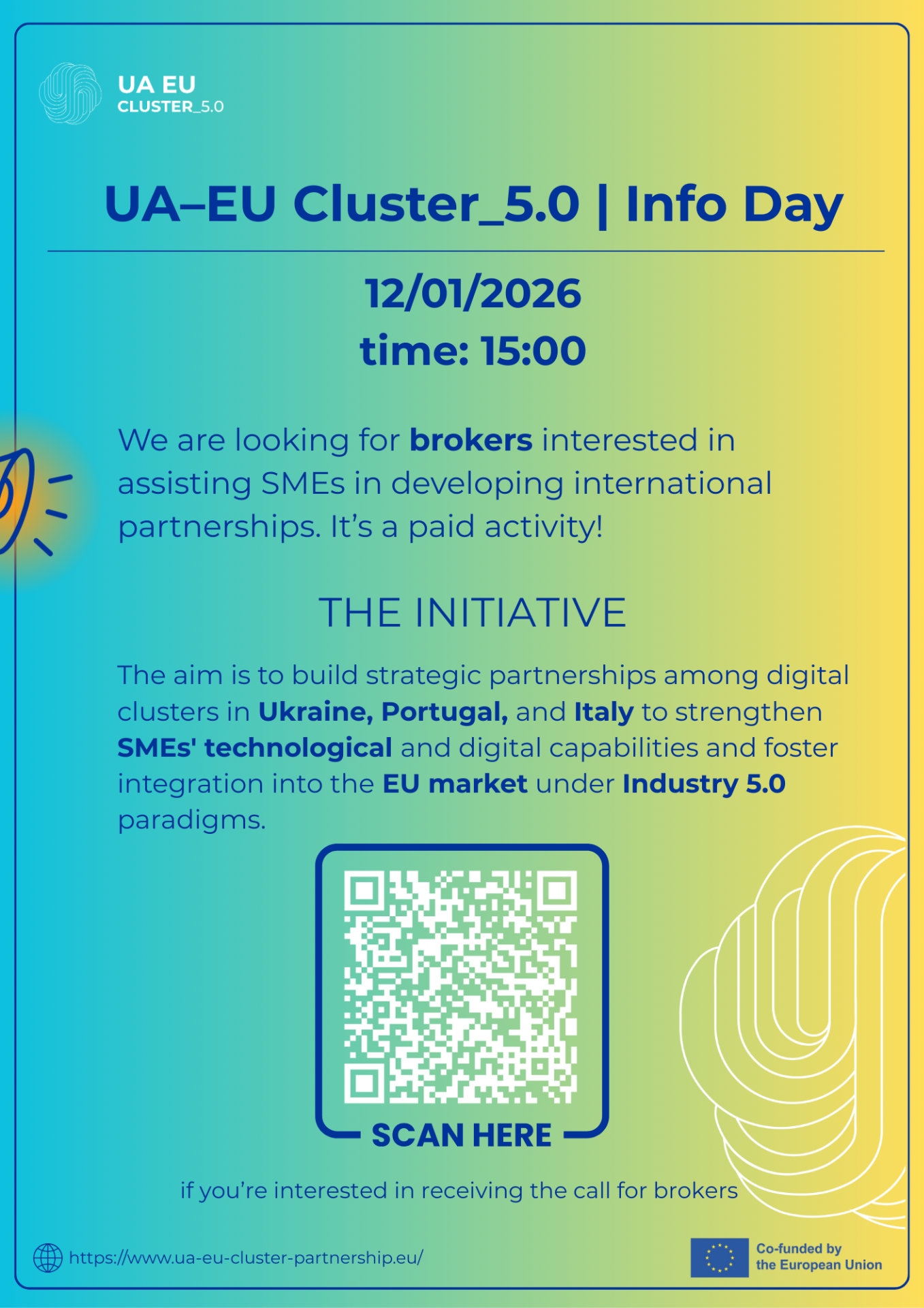 The UA–EU Cluster 5.0 consortium is organising an online Info Day dedicated to the Call for Partnership Brokers.